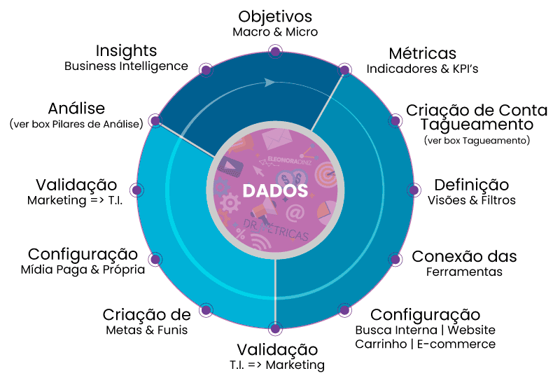 No início do framework, falamos sobre Macro e Micro conversões e na sequência falamos das definições de métricas, indicadores e KPI ́ s. Esses levantamentos são necessários para cadastrar as metas que serão acompanhadas via Google Analytics. É possível que existam casos em que as metas precisam ser acompanhadas por sistemas internos da empresa ou por outros softwares de mercado. O importante aqui é ter controle de todas as metas que precisam ser monitoradas para saber se o negócio está indo bem ou não.